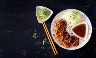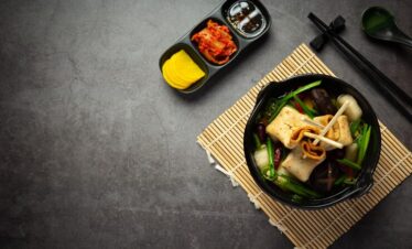• Japchae is a plate of fried glass noodles with meat and vegetables.